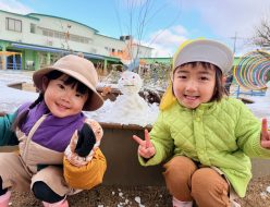 雪が積雪し、道路が凍結していたため、安全面を考慮して自由登園日でした。登園した子どもたちは、雪だるまを作ったり雪合戦をしたりして元気いっぱい遊びました。
