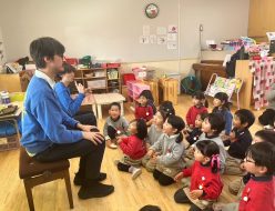 2月13日(金)、イングリッシュワールドの行使の方に来ていただき、年少児を対象に「英語で遊ぼう」を行いました。子どもたちは始まる前から「どんな先生が来るかな?」「早く来ないかな?」と、楽しみにする姿が見られた子どもたち。