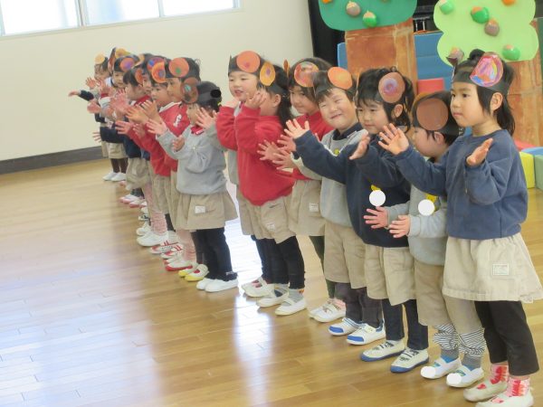 生活発表会はその名の通り、普段の生活や遊びをを発表する場と考えています。何よりも子ども自身が楽しめる発表会でありたいと思っています。発表会を通して、先生や友だちと一緒に楽しんでいる様子やそのものになりきっているかわいい姿を見て頂き、保護者の方には一人ひとりの子どもの成長を感じていただけたのではないかと思います。