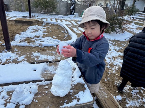 登園した子どもたちは、雪だるまを作ったり雪合戦をしたりして元気いっぱい遊びました。