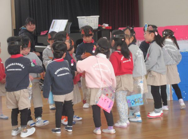 「ピッテラトッコ」の劇遊びを通して、困っている人がいたら助けてあげたり、友だちに感謝したり、相手を思いやる気持ちが育ってくれればと思います。