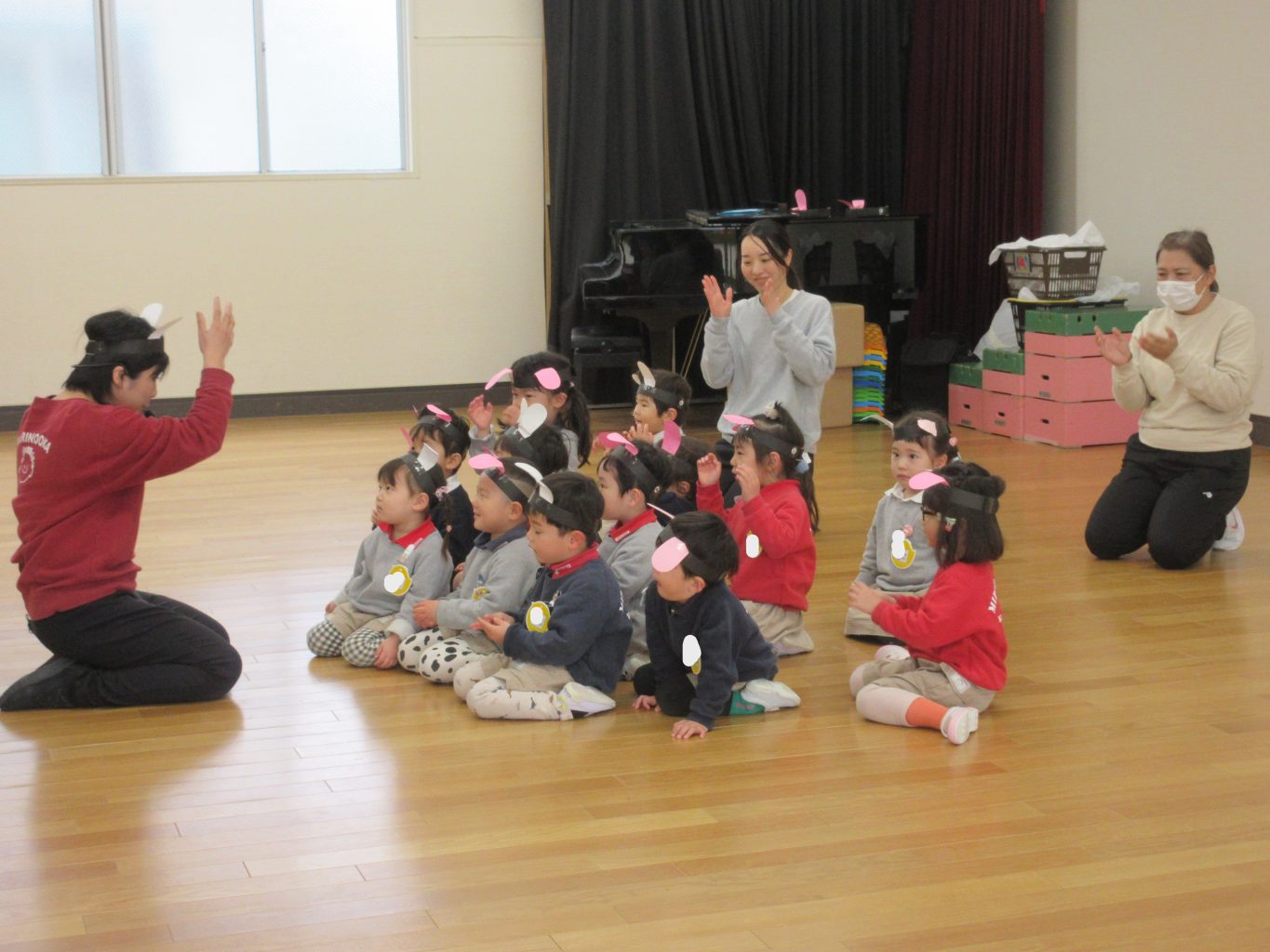 2月25日(水)・26日(木)に満三歳児クラス(ひよこ組・あひる組)の生活発表会を行いました。