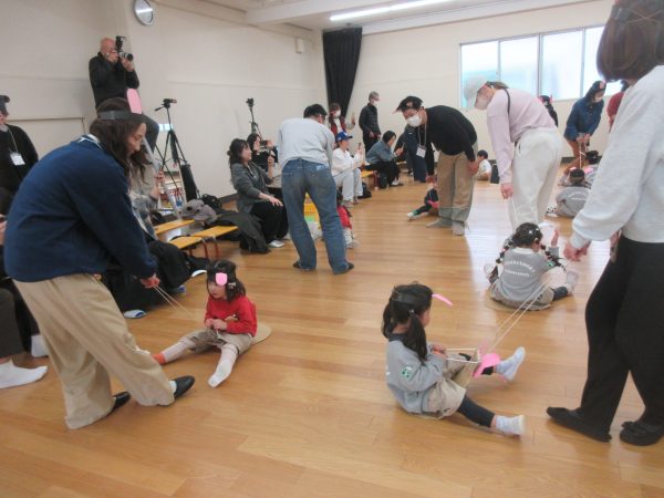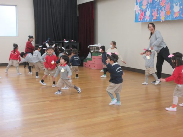 子どもたちが普段から楽しんでいる遊びや踊りを取り入れながら先生や友だちと一緒に遊ぶ楽しさを味わっていました。
